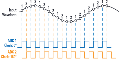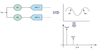 當(dāng)ADC被交錯(cuò),兩個(gè)或更多的ADC,以及一個(gè)限定的計(jì)時(shí)關(guān)系  用于  同時(shí) 取樣  輸入 信號  產(chǎn)生 一個(gè)組合的輸出信號的結(jié)果在采樣帶寬在一些多個(gè)單個(gè)ADC的。利用個(gè)ADC可以將有效采樣率提高m倍。