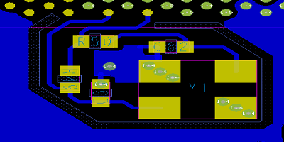 晶體放置在靠近IC的位置,但似乎可以通過(guò)將電路順時(shí)針旋轉(zhuǎn)90度來(lái)獲得較短的走線。請(qǐng)注意,路徑保持不開(kāi)會(huì)產(chǎn)生一條溝紋,該溝紋將外層接地層與晶體的引腳分開(kāi)。在形狀的邊緣放置通孔將無(wú)法達(dá)到目的。理想情況下,將有一個(gè)或多個(gè)XO返回引腳用于直接返回SOC的接地路徑。